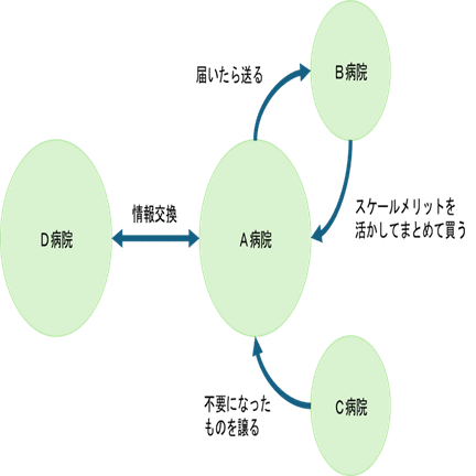 新潟県立病院は10病院(直営のみ)あり、これらの病院間の情報共有ツールを活用して不要になったものを譲り合うシステムや、組織全体でスケールメリットを活かした購入(同じものを多く買うことで単価を安くする仕組み)を行っています。