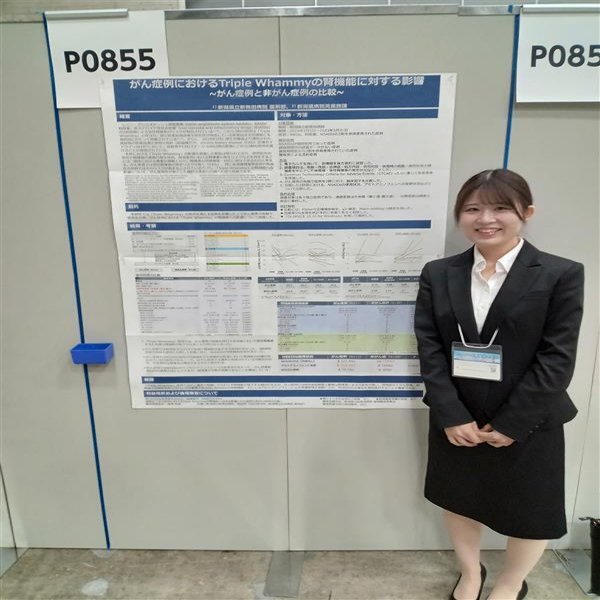 さらに、専門資格取得への支援体制が整備されている点も県立病院を志望してよかったと感じている理由のひとつです。日常業務を通じた丁寧な指導に加え、認定・専門薬剤師の取得を目指すための研修参加や学会活動への支援制度が整っており、キャリア形成を組織として後押しする文化があるため、興味のある分野がある場合には着実に専門性を高めていくことができます。現在、私も資格取得を目指しており、その資格取得に必要な学会での発表の学会参加や臨床研究など最初は何も分からない状態でしたが、周りの先輩薬剤師の方々にアドバイス・サポートしていただきながら昨年度学会でのポスター発表を経験することができました。継続的に学び成長したい薬剤師にとって非常に心強い職場です。