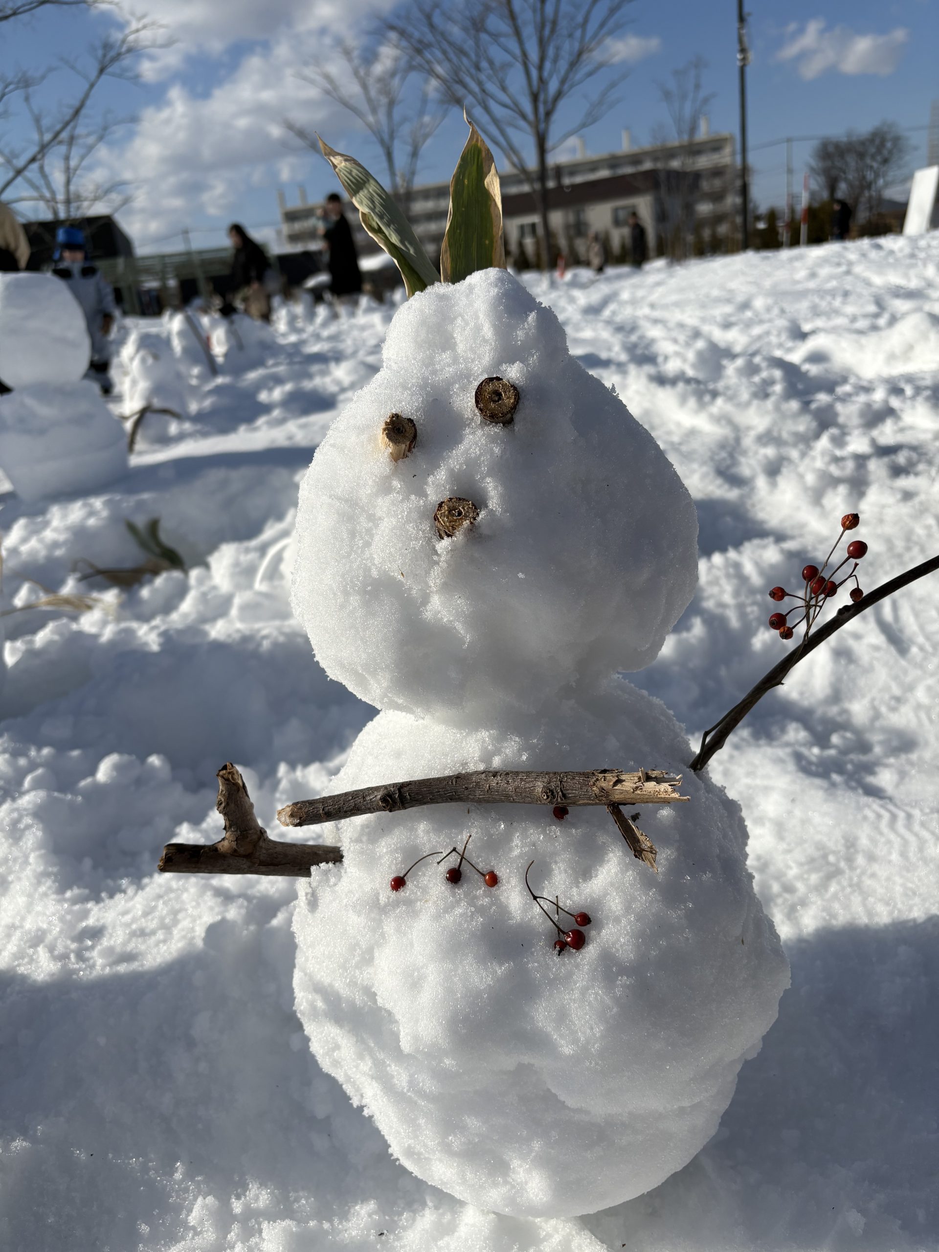 道庁に入庁してから、子どもが二人できて、二人目の時は育児休業を取りました。子どもとの時間を大事にすることが、自分の気持ちを安定させたり、リセットしたりすることにつながり、週明けのより良いパフォーマンスへつながっていると思っています。(写真は親子で作った雪だるまです)