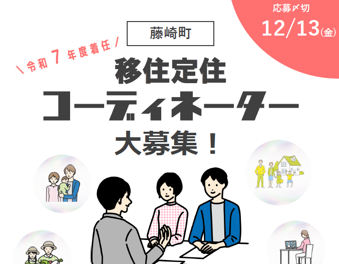 ・「令和7年度着任藤崎町移住定住コーディネーター募集要項」をご覧いただいたうえでご応募ください。